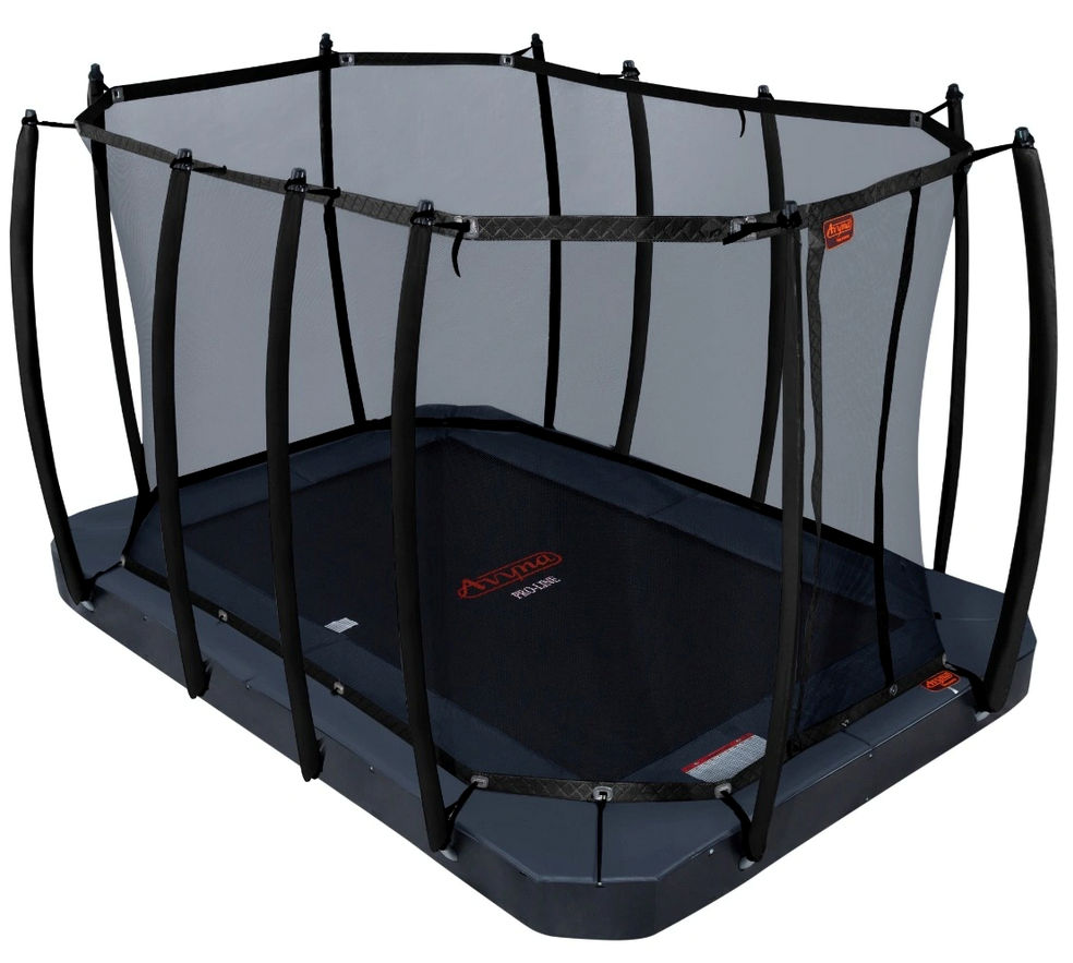Is het veiligheidsnet van je trampoline aan vervanging toe? Dit veiligheidsnet met gebogen palen (bended poles) is geschikt voor de rechthoekige Avyna Pro-Line trampoline 352 (Opbouw, inGround & FlatLevel) met een afmeting van 520 x 305 cm.
