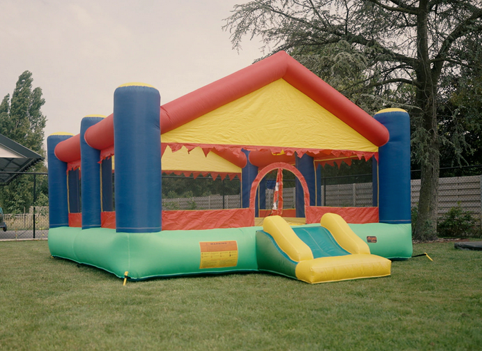 The Party House Big inflatable has various features such as a slide and huge jumping area. The dimensions of this bouncy castle are 4m x 5m x 2.15m. The inflatable is made of nylon material with a PVC coating and is perfectly finished with an eye for detail.